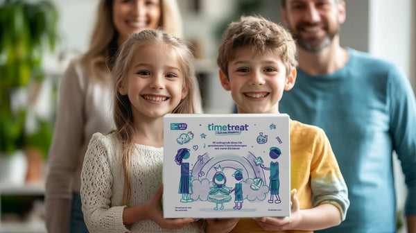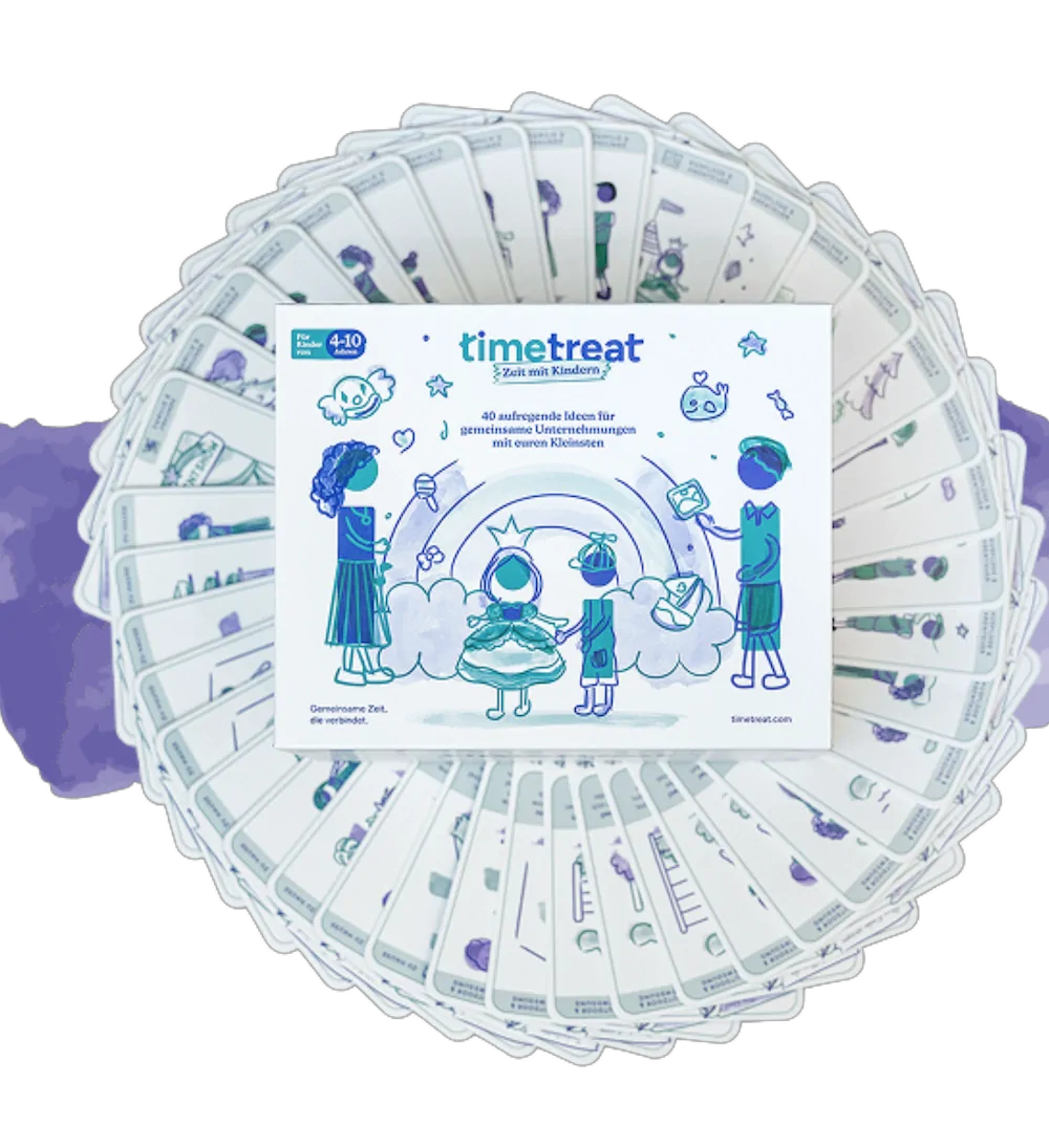 Unsere TimeTreat Box enthält 40 abwechslungsreiche Ideen für gemeinsame Zeit mit Kindern – für drinnen und draußen, spontane Nachmittage oder besondere Wochenenden.