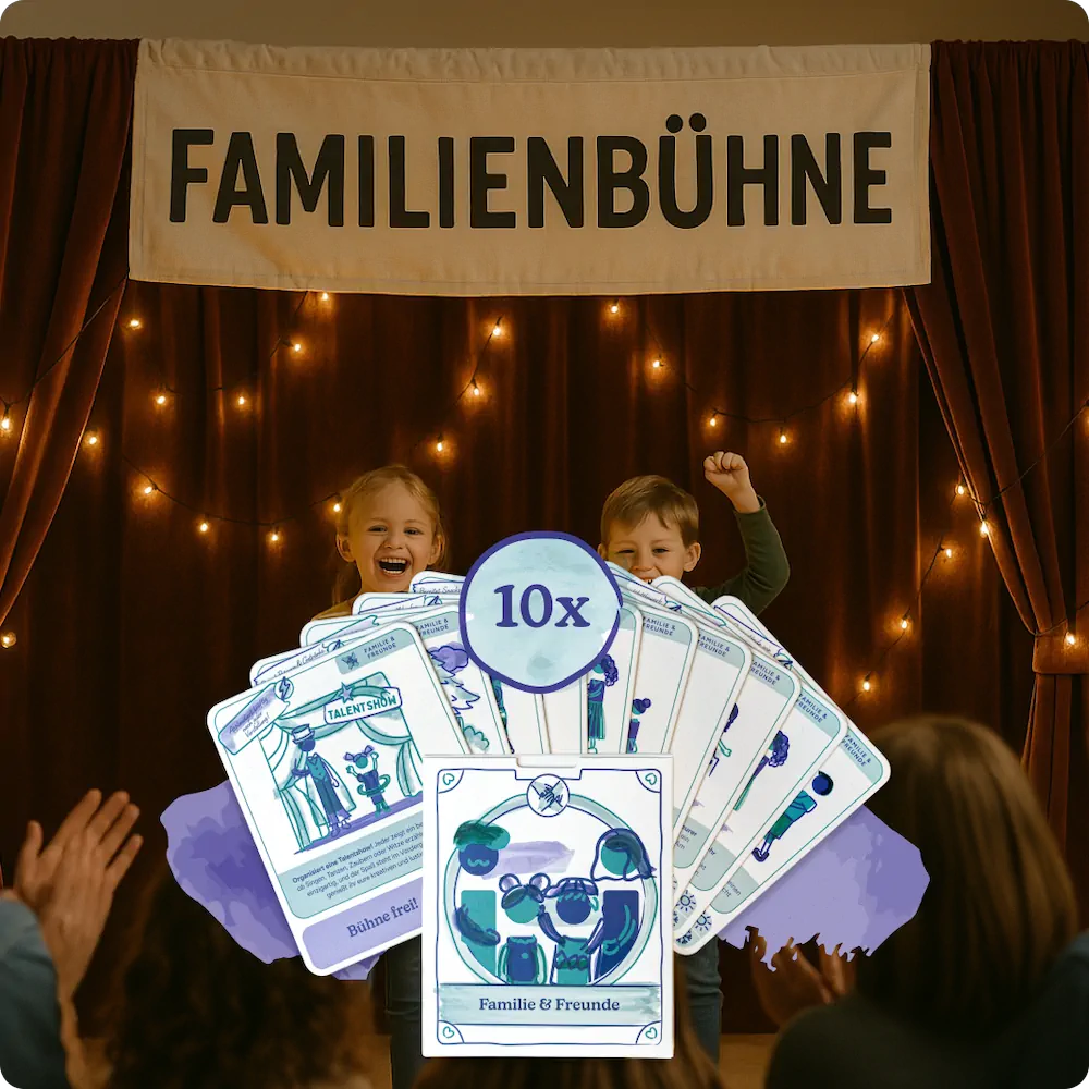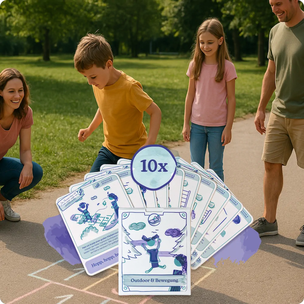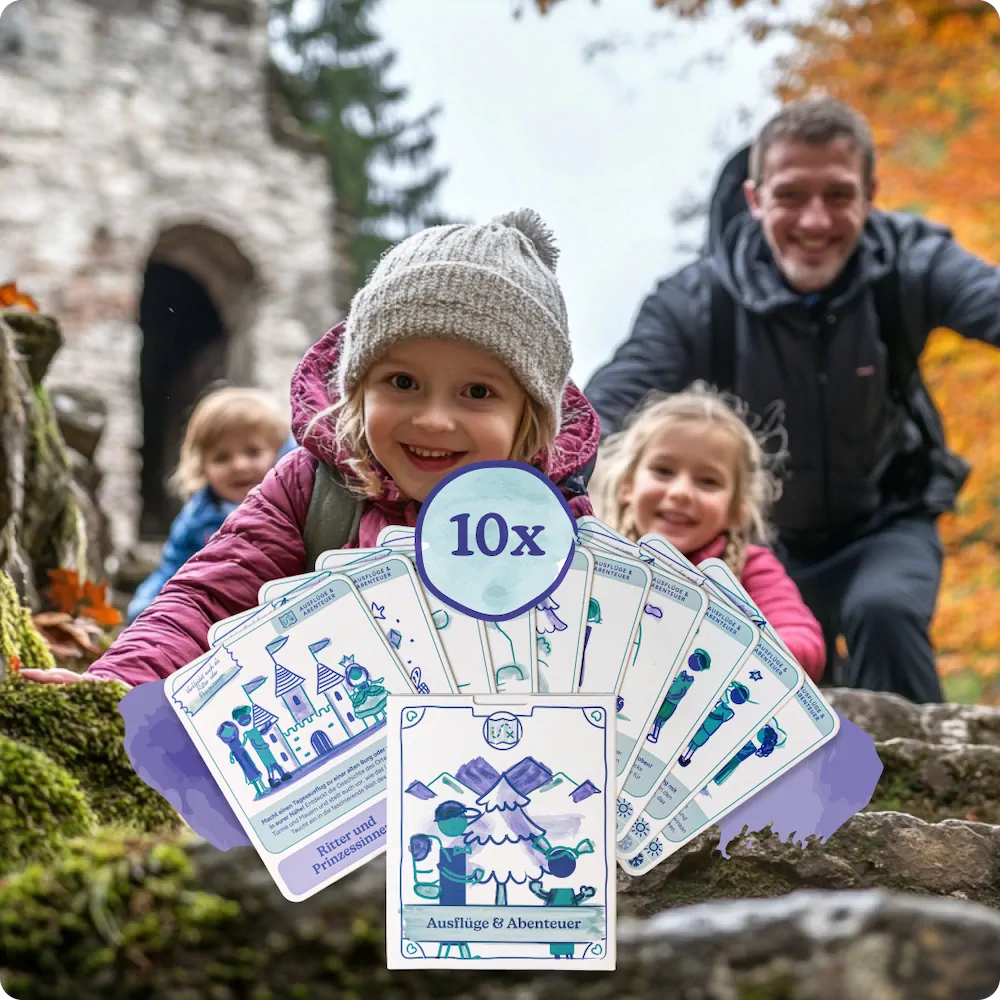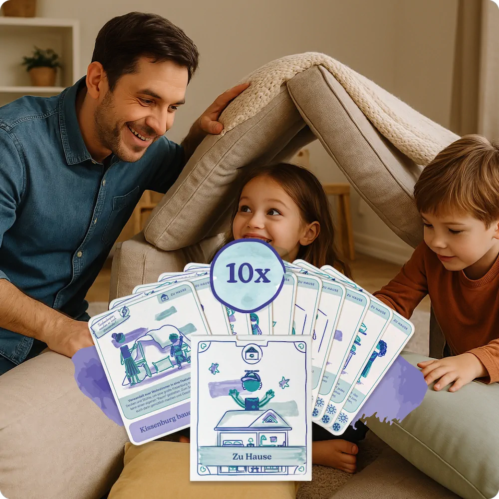 Viele Papas wünschen sich mehr Nähe zu ihren Kindern – aber wissen im hektischen Alltag oft nicht, wo sie ansetzen sollen. Statt großer Ausflüge reichen oft kleine Impulse, die leicht umzusetzen sind und trotzdem in Erinnerung bleiben. Unsere Karten bieten dafür praktische Unterstützung – ganz ohne Vorbereitungsstress.